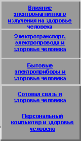 При работе монитора на экране кинескопа накапливается электростатический заряд, создающий электростатическое поле (ЭСтП ). В разных исследованиях, при разных условиях измерения значения ЭСтП колебались от 8 до 75 кВ/м. При этом люди, работающие с монитором, приобретают электростатический потенциал. Разброс электростатических потенциалов пользователей колеблется в диапазоне от -3 до +5 кВ. Когда ЭСтП субъективно ощущается, потенциал пользователя служит решающим фактором при возникновении неприятных субъективных ощущений. Заметный вклад в общее электростатическое поле вносят электризующиеся от трения поверхности клавиатуры и мыши. По обобщенным данным, у работающих за монитором от 2 до 6 часов в сутки функциональные нарушения центральной нервной системы происходят в среднем в 4,6 раза чаще, чем в контрольных группах, болезни сердечно-сосудистой системы - в 2 раза чаще, болезни верхних дыхательных путей - в 1,9 раза чаще, болезни опорно-двигательного аппарата - в 3,1 раза чаще. С увеличением продолжительности работы на компьютере соотношения здоровых и больных среди пользователей резко возрастает. Влияние компьютера на организм человека Влияние на зрение: развитие миопии развитие катаракты Синдром длительной статистической нагрузки: развивается мышечная слабость изменения формы позвоночника Стресс: агрессивность депрессия раздражительность Дерматиты и тендовагиниты Рекомендации: Монитор должен быть установлен прямо перед пользователем, на расстоянии 60 – 70 см. Туловище пользователя должно находиться от стола на расстоянии 15-16 см. Рабочий стол и посадочное место должны иметь такую высоту, чтобы уровень глаз пользователя находился на уровне или чуть выше центра монитора. Не прикасайтесь к экрану монитора. Системный блок и монитор должен находиться как можно дальше от вас. Сократите время работы за компьютером. |
